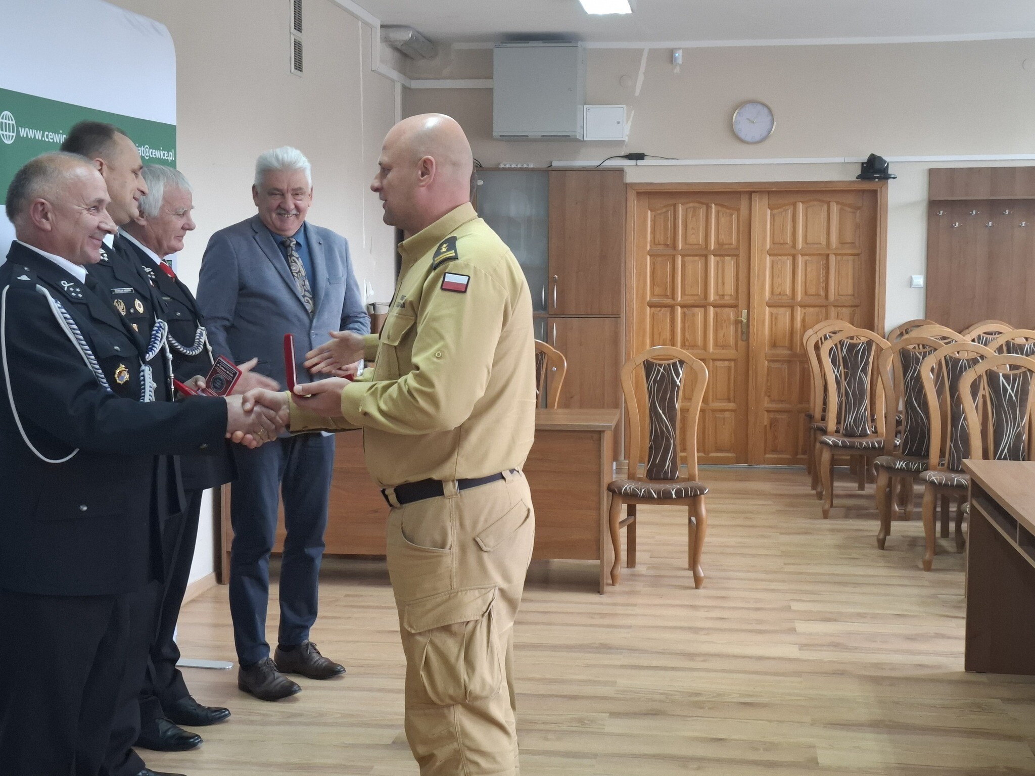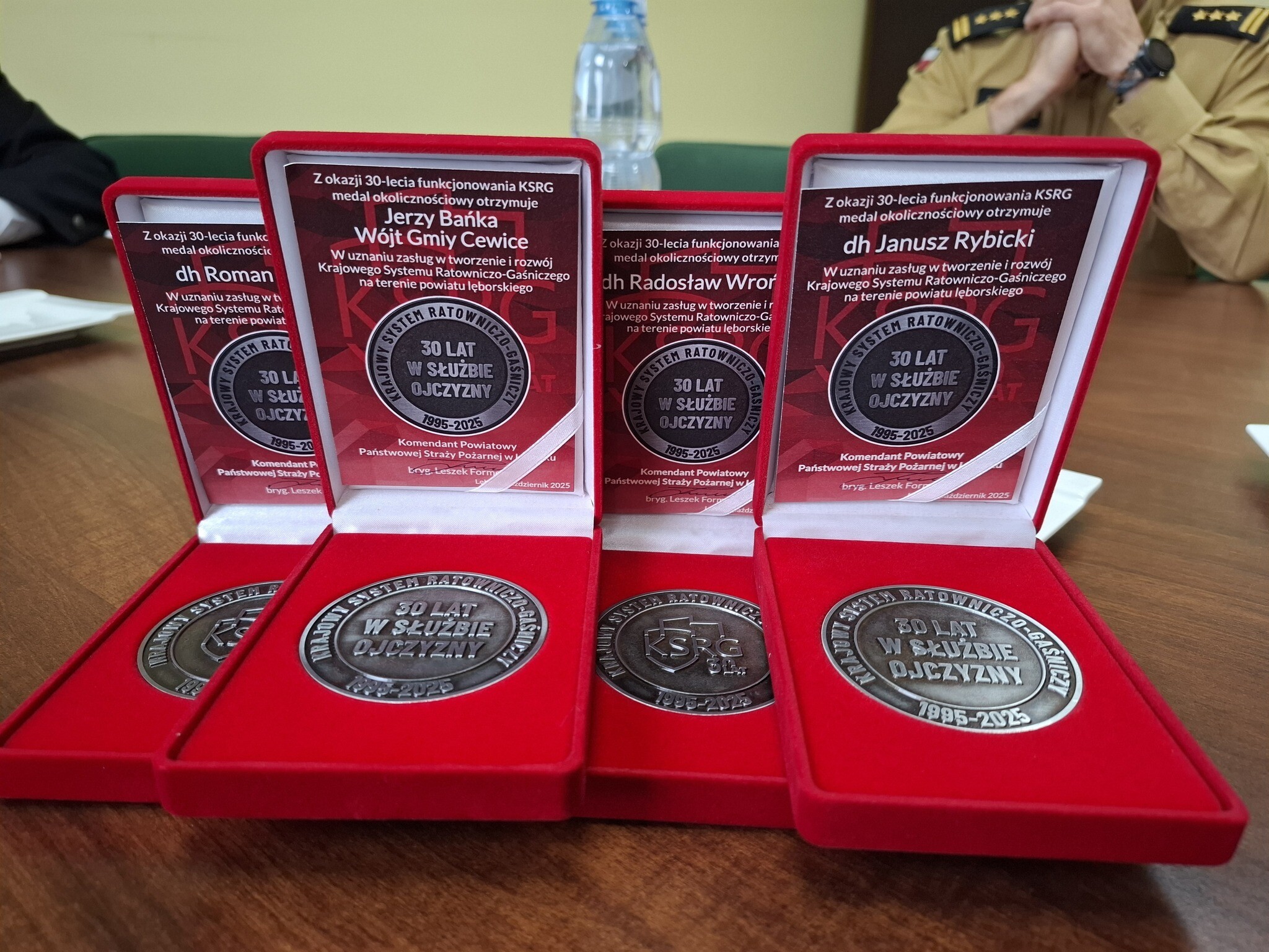 W Urzędzie Gminy Cewice bryg. Leszek Formela, Komendant Powiatowy Państwowej Straży Pożarnej w Lęborku, oraz st. bryg. Tomasz Kołakowski, Zastępca Komendanta Powiatowego PSP w Lęborku, wręczyli medale z okazji 30-lecia funkcjonowania Krajowego Systemu Ratowniczo-Gaśniczego.