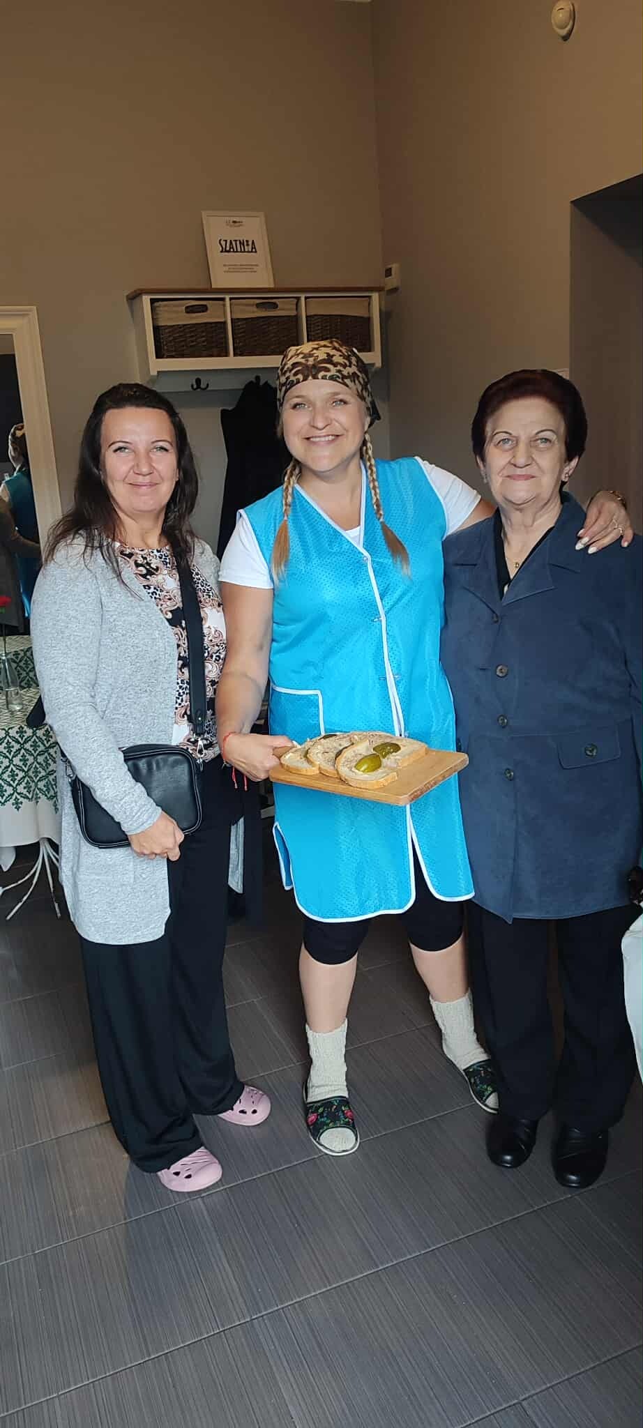 Na stole pojawiły się potrawy pamiętane z dawnych lat – galareta, chleb ze smalcem i ogórkiem, kompot, ciasta i inne smakołyki. Każdy mógł spróbować, a na zakończenie każdy uczestnik otrzymał w prezencie słoiczek smalcu na wynos.