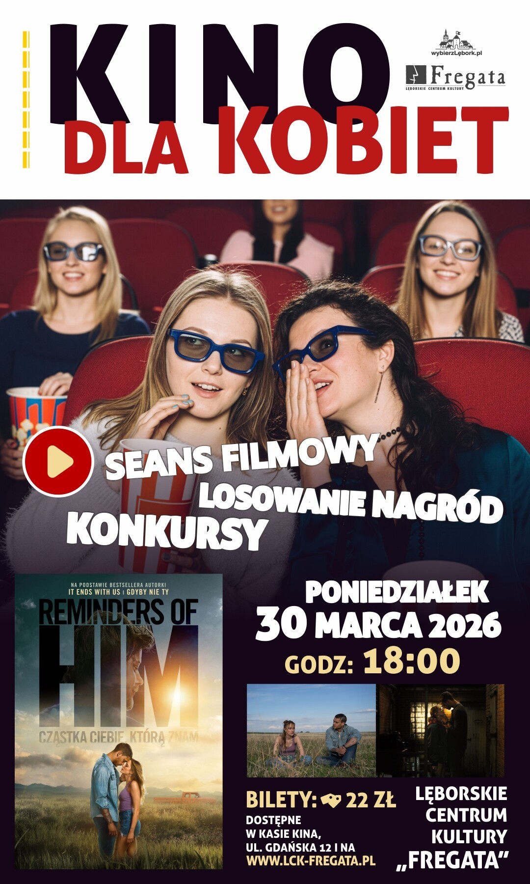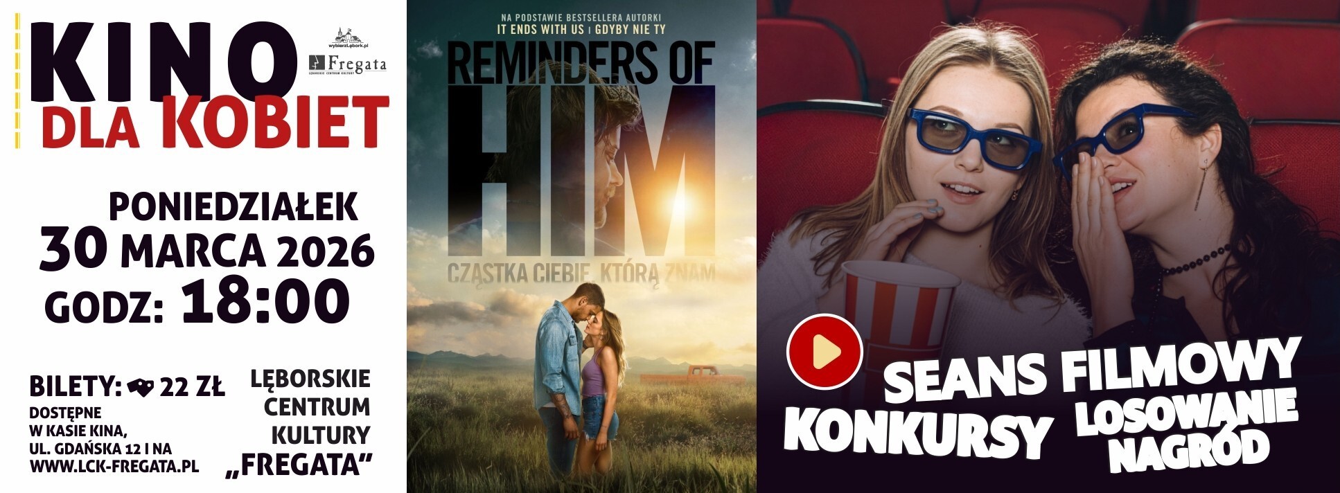 Lęborskie Centrum Kultury "Fregata" zaprasza na spotkanie w ramach cyklu "Kino dla Kobiet". W poniedziałek, 30 marca 2026, na ekranie lęborskiej "Fregaty" zobaczymy film "Reminders of Him. Cząstka Ciebie, którą znam" - opowieść o nadziei na drugą szansę i o ludziach, którzy walczą równie mocno, jak kochają.