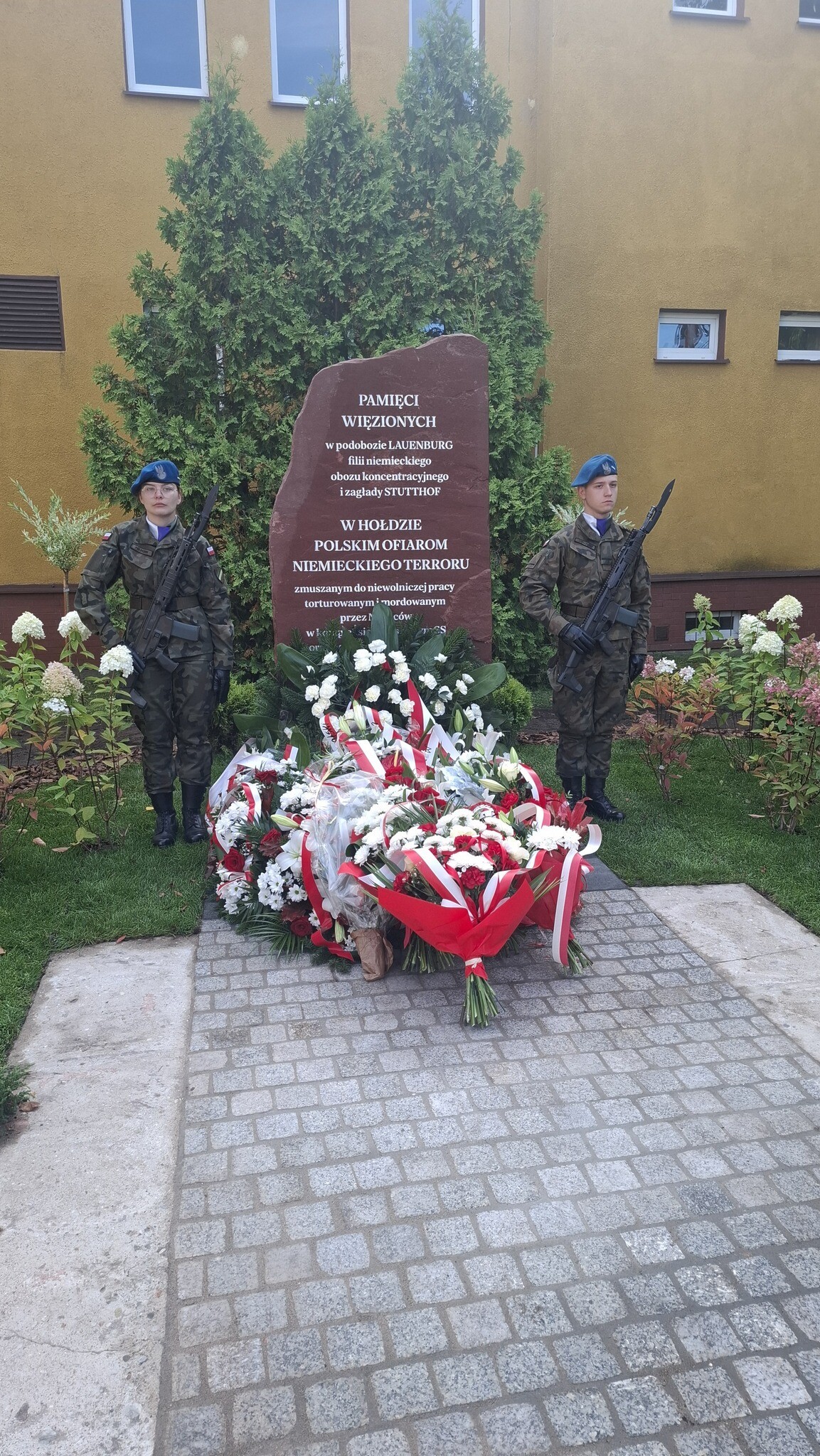 Wójt Gminy Jerzy Bańka wraz z Zastępcą Wójta Joanną Parszewską uczestniczyli dziś w uroczystości odsłonięcia tablicy upamiętniającej polskie Ofiary niemieckiego terroru okresu II wojny światowej – więzionych w podobozie Lauenburg, filii niemieckiego obozu koncentracyjnego i zagłady Stutthof.
