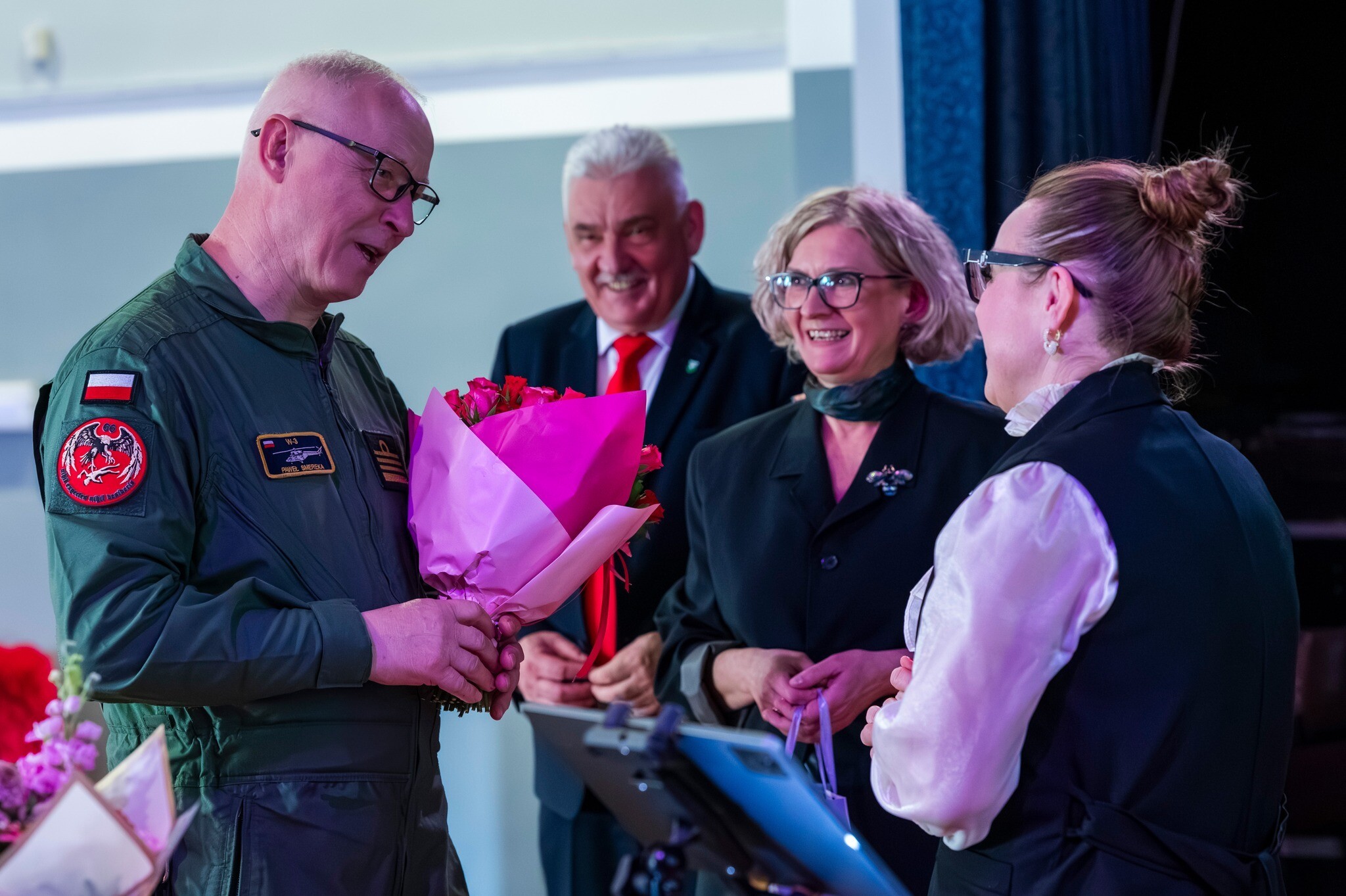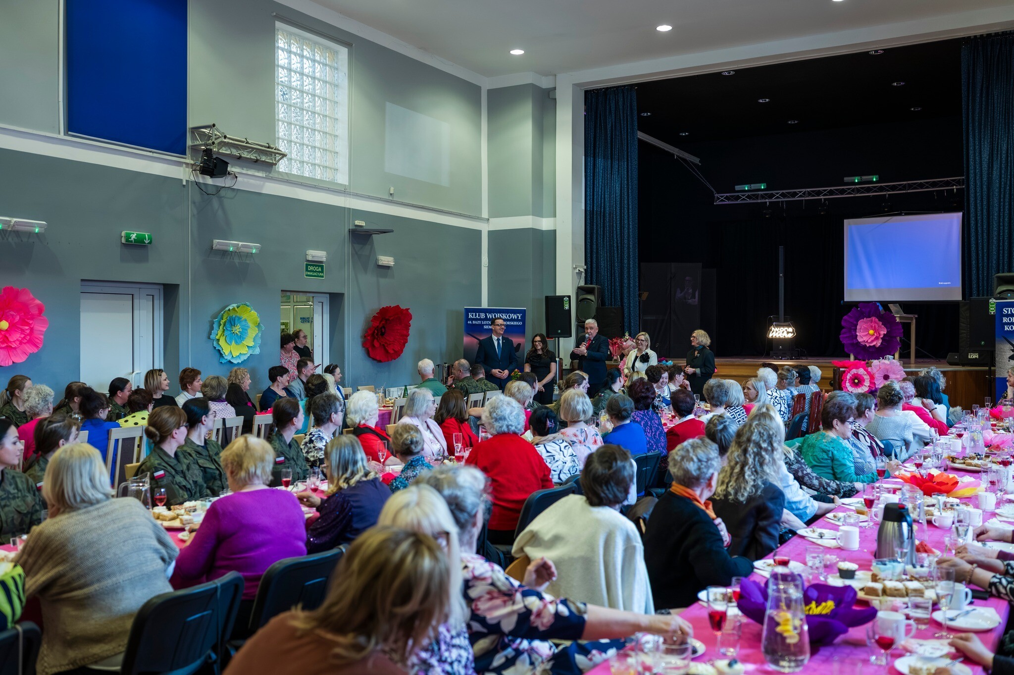 Obok kmdr pil. Pawła Smereki, życzenia Paniom składali Jerzy Bańka - wójt Gminy Cewice, przewodnicząca rady gminy Marzena Reclaf - Przewodnicząca Rady Gminy Cewice, wicestarosta powiatu Adrian Wenta a także Pani Ewa Maszota Dyrektor CUS w Cewicach.