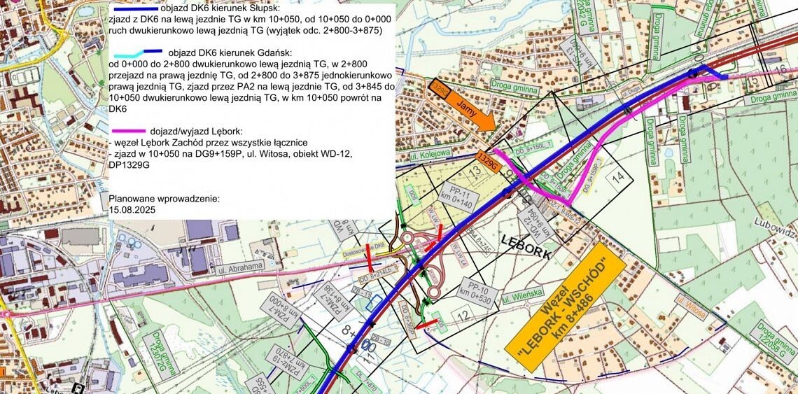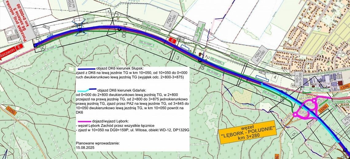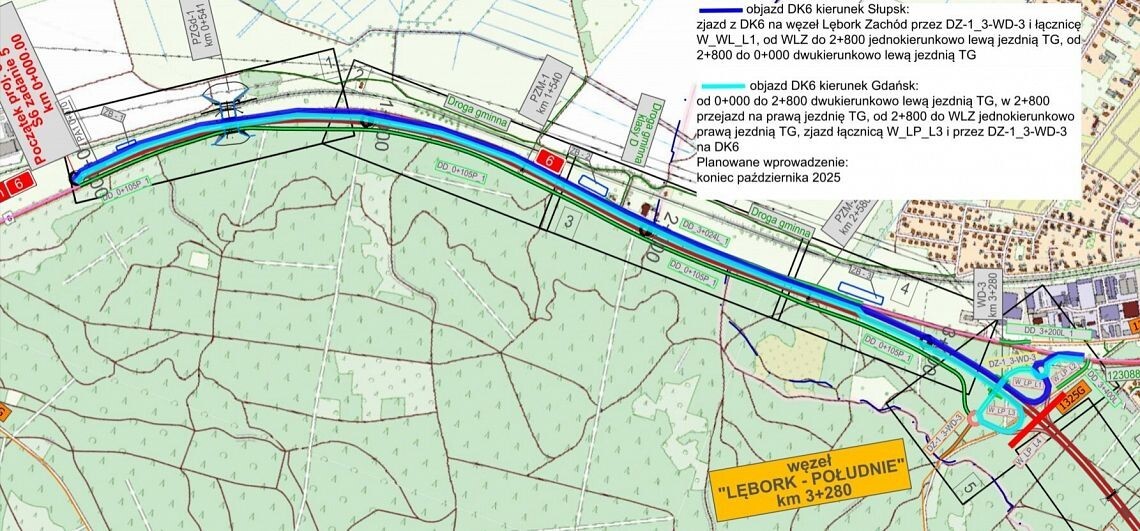 Od 18 lipca 2025 r. na około trzy tygodnie planowana jest kolejna, istotna zmiana w organizacji ruchu na odcinku drogi krajowej nr 6, wynikająca z trwającej budowy drogi ekspresowej S6. Wykonane zostanie połączenie nowo wybudowanego węzła Lębork Zachód z istniejącą trasą drogi krajowej DK6. Zjazd z północnego ronda zostanie połączony z drogą krajową łukiem w kierunku wschodnim jako odcinek ciągły, a nie skrzyżowanie jak dotychczas.